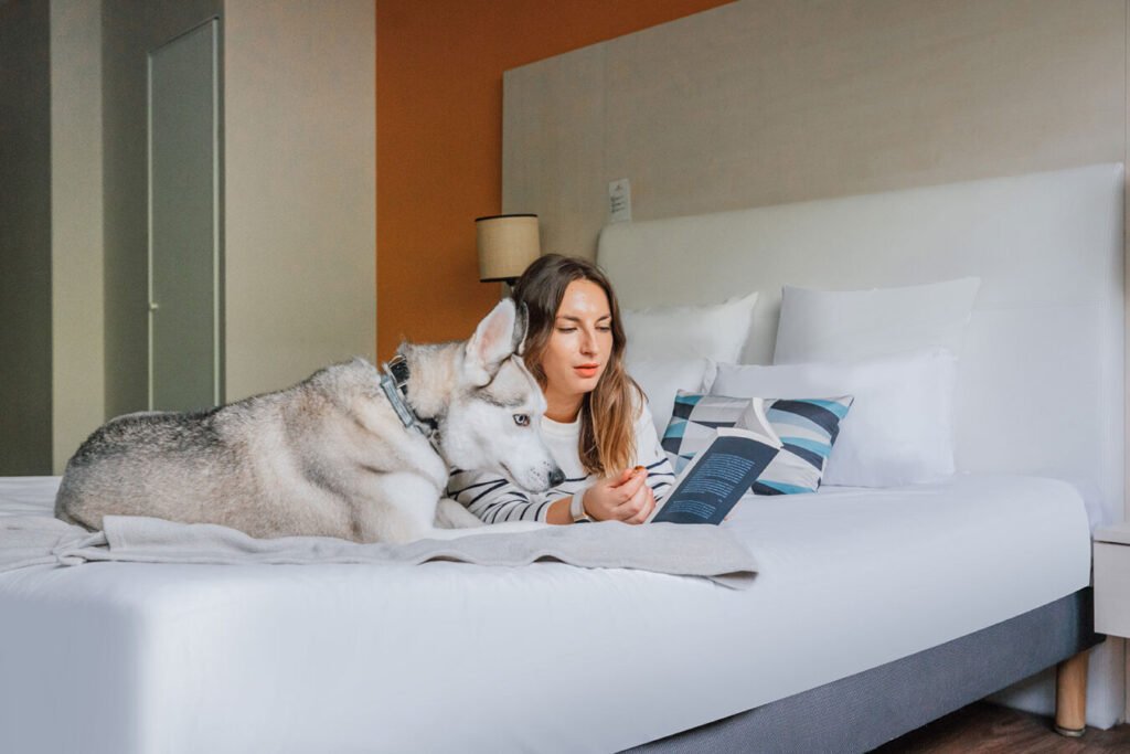 - Espaces adaptés, comme le lobby où votre chien est le bienvenu, à condition d’être tenu en laisse
