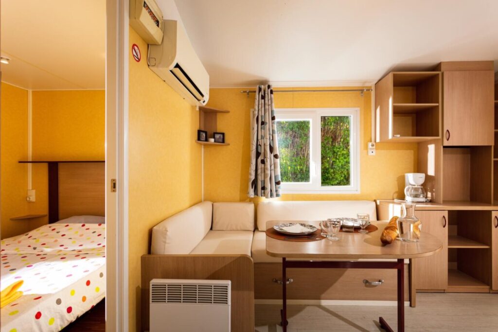 - Mobil-Home Essentiel: 2 ou 3 chambres, salle de bain, cuisine équipée, terrasse semi-couverte