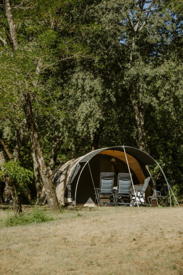 🏕️ nos 118 emplacements pour tentes et caravanes, de 80 m² ou plus, avec ou sans sanitaire privé.