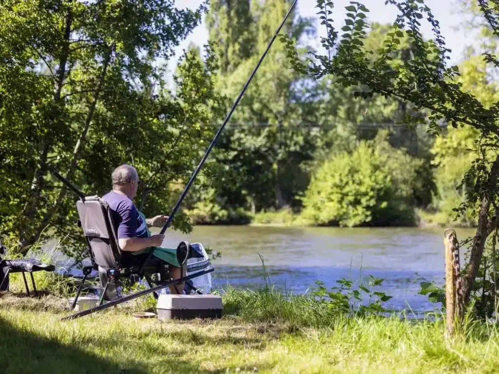 🎣 pêche à la ligne (carte de peche en vente au camping) ;