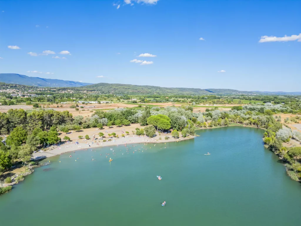 Vous profitez aussi d’un lac naturel privé de 4 hectares avec plage aménagée, idéal pour la baignade, la détente et les activités nautiques.