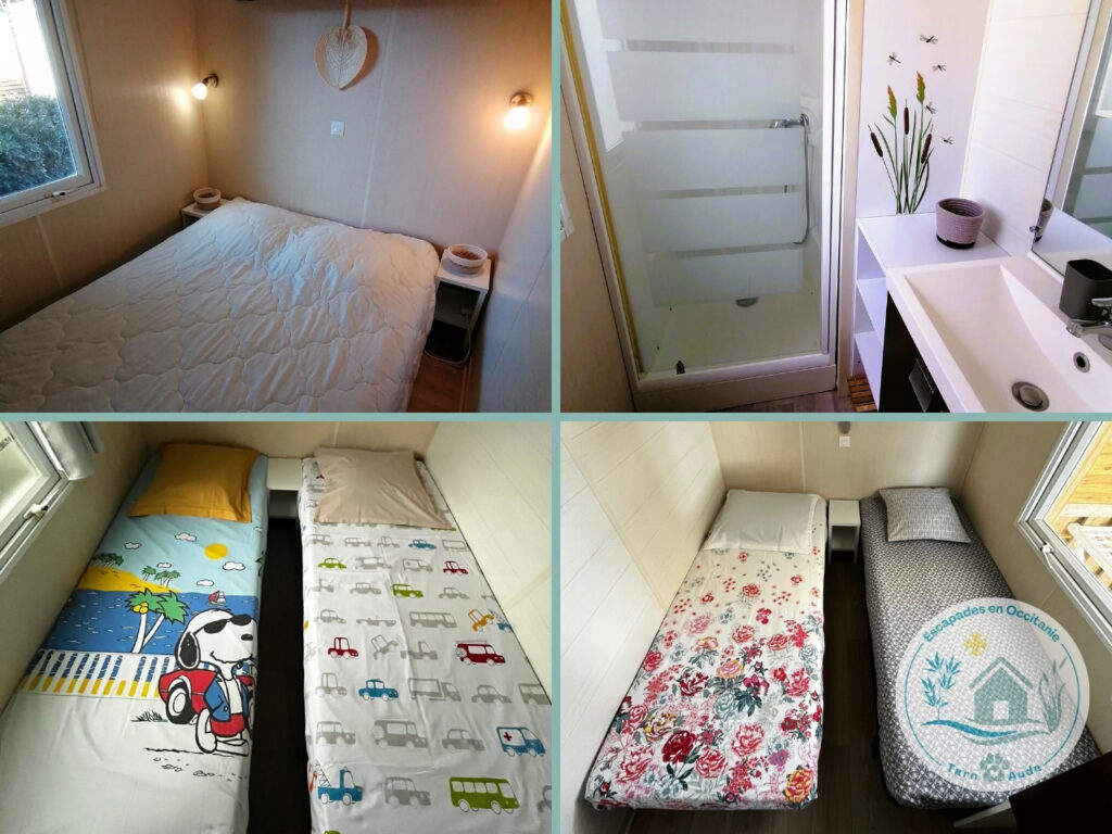 Notre mobil-home Entre Terre et Roseaux offre une capacité de 6 personnes.