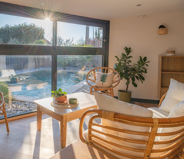 - 🌿Terrasse côté piscine semi-clôturée (un chien fugueur peut facilement passer, attention à ce qu’il n’aille pas dire bonjour aux voisins😉)