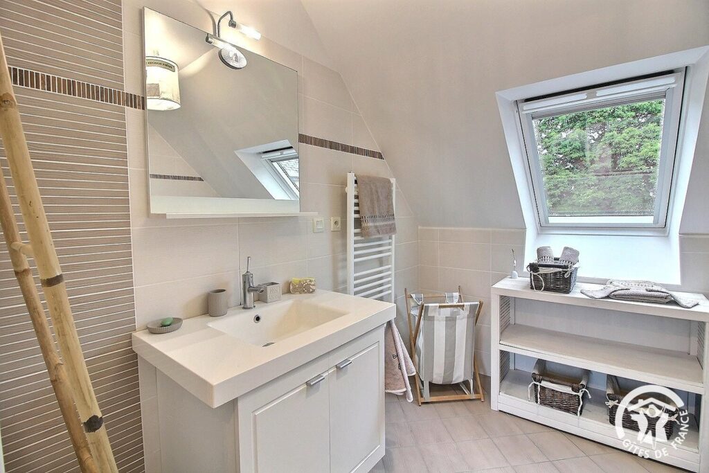 - Salle d’eau moderne avec douche, vasque et wc,