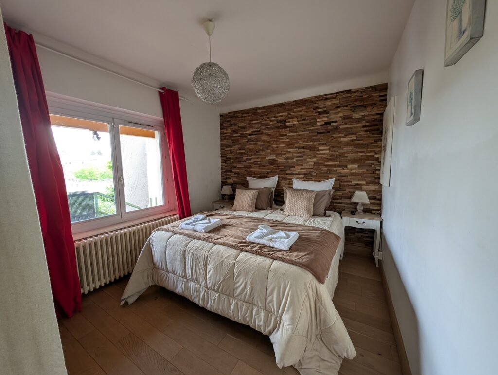 Au premier étage, séjournez dans un appartement T2 pour 2 personnes, à l’ambiance cosy et chaleureuse (entrée indépendante). 🛋️ Pour de bonnes nuits de sommeil, profitez d’une literie haut de gamme, king size. Avec service hôtelier tout inclus. 💤