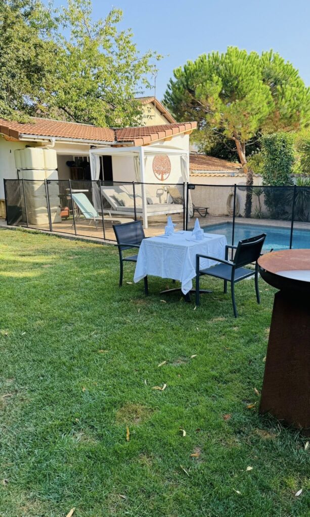 🌿 Vous bénéficiez d’une terrasse privée, sécurisée et fermée avec mobilier. Celle-ci vous donne accès à notre jardin avec piscine.