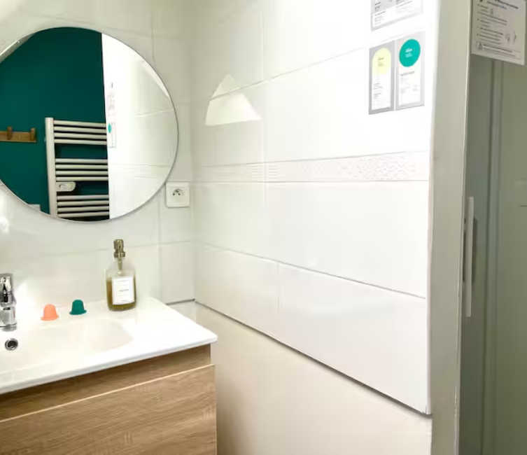 🚿 une salle d’eau avec gel douche, shampooing et sèche-cheveux ;