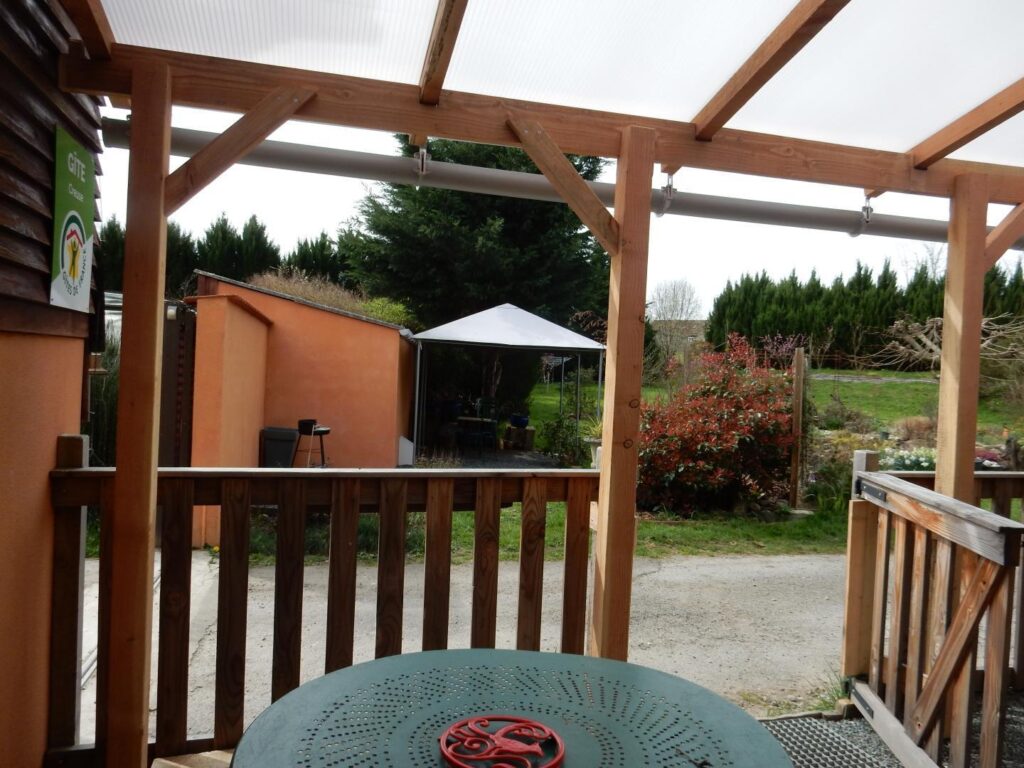 - Terrasse de 15 m² avec pergola indépendante et sécurisée devant le Gîte