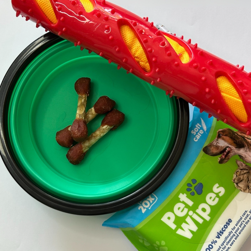 - 🐶Kit chien : gamelle, biscuits (un kit chat est également disponible avec litière, panier, gamelle et friandises)
