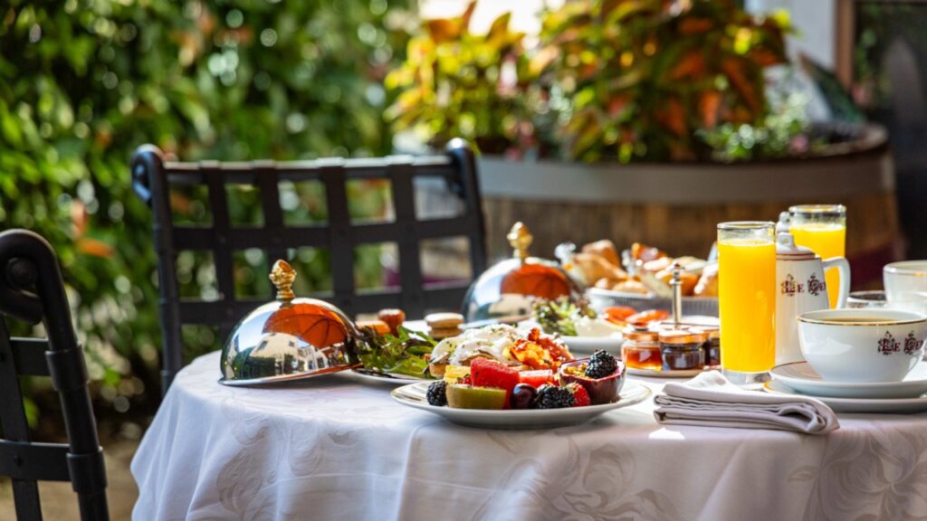 - 🍳 Petit-déjeuner buffet servi en caveau, en salon ou en terrasse aux beaux jours