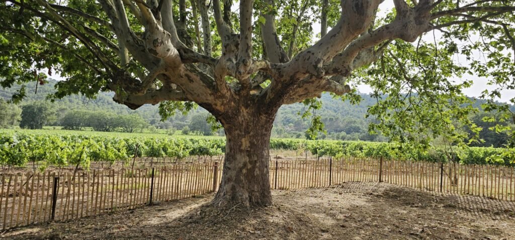 Ce petit coin de paradis vous séduira par son calme et l’ombre apportée par son majestueux platane taillé en dételle des centaines d’années auparavant. Vous serez en osmose avec la nature.