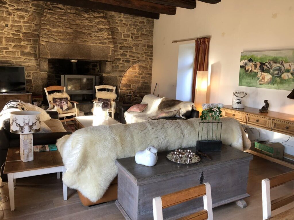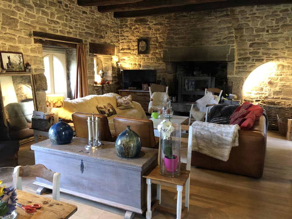 - Le confortable gîte, très bien équipé peut recevoir 6 à 7 personnes. Il est composé de 2 chambres, 2 salles de bain, un salon cosy avec poêle à bois, cuisine toute équipée et salle de jeux avec babyfoot et fléchettes!