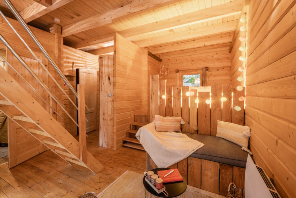 Chaque hébergement possède son propre univers : ambiance boisée, décor montagnard ou esprit scandinave… toutes nos cabanes disposent d’un spa privatif sur la terrasse, chauffé toute l’année, pour profiter d’un moment de détente en pleine nature. Certaines offrent aussi un hamac géant (Cabanes des Trolls ou des Sylphes) ou même un sauna privatif (cabane des Farfadets).