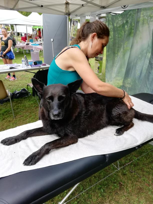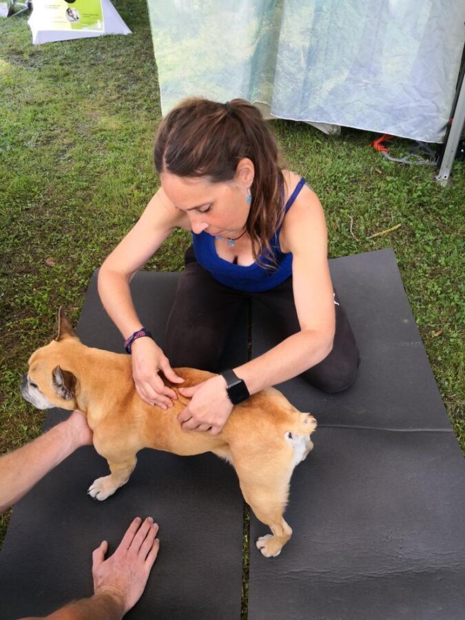 - Votre compagnon choisit son rythme, sans aucune contrainte ni appréhension : sur la table de massages s’il s’y sent bien, ou confortablement installé au sol sur un tapis moelleux.